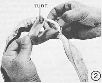 [7] Cut a valve-stem hole in the tape with a sharp knife or single-edged