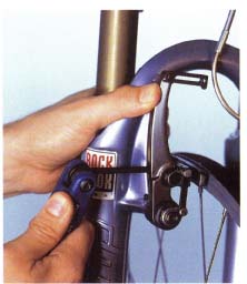 V-brakes are fitted to most new mountain bikes because they give good stopping power. Maintaining brake performance is crucial because of the harsh conditions to which mountain bikes are sometimes subjected, so knowing how to adjust the brakes at home and out on the trail is very important. Pad alignment and brake travel need to be checked and adjusted regularly to keep them working properly. Bear in mind that as soon as you ride off-road you will increase brake pad wear. Even a single ride can render already worn pads useless, so change them before they need it. Adjustment in the workshop, especially pad alignment, is best performed with the tire removed, since off-road tires are bulky and can get in the way. Wheels must run true before setting up brakes. Tools needed: