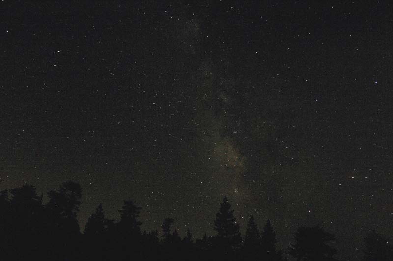 2005-09-01: Mt. Pinos, Los Padres National Forest, California: The image below is a still-frame from the time-lapse movie showing the Milky Way "traveling" from the south-east to south-west. Laser-beam-like